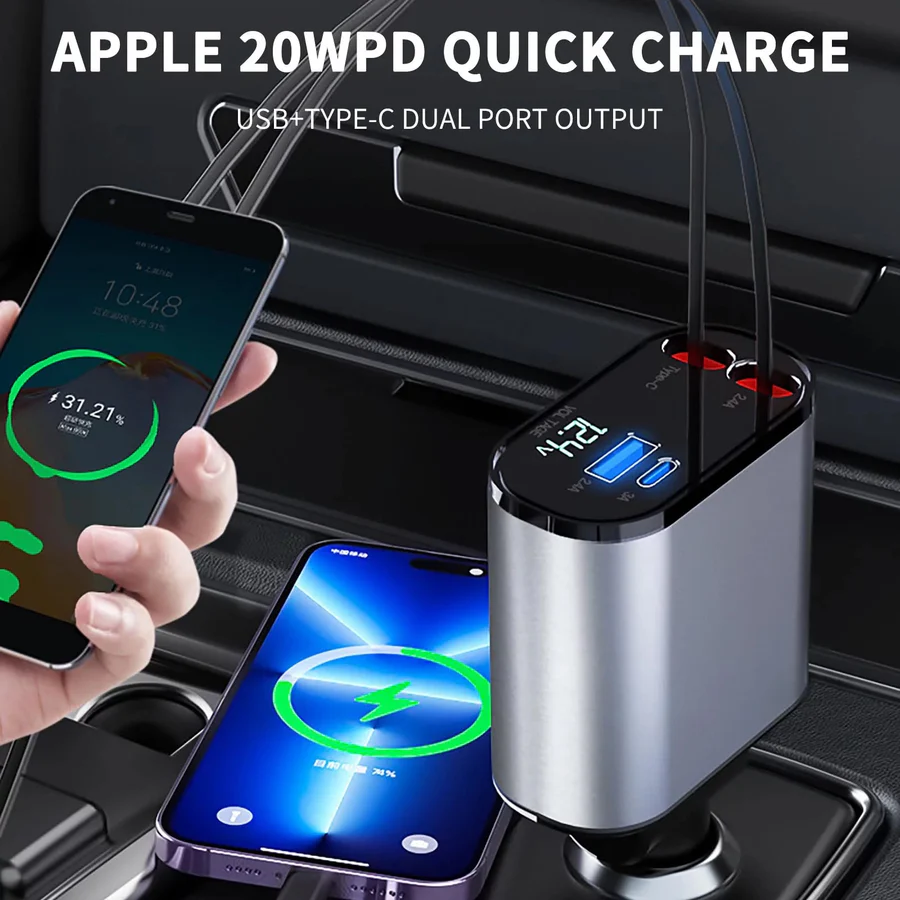 chargeur de voiture rétractable 4 en 1 ⚡ conçu pour offrir une charge
