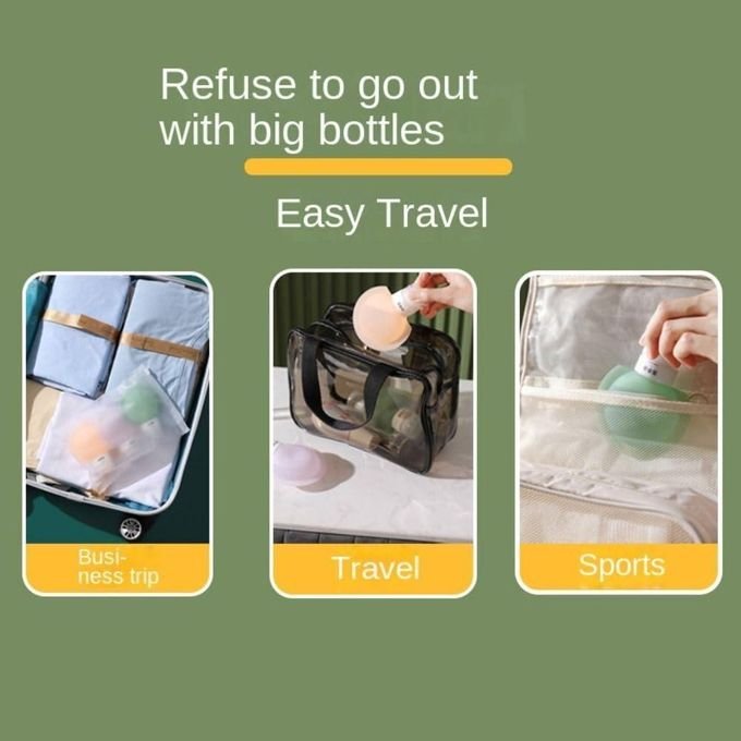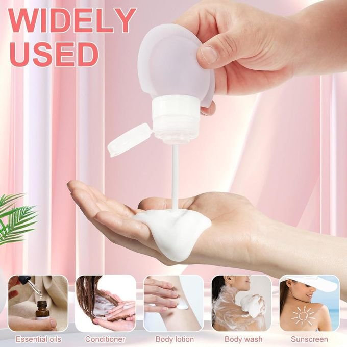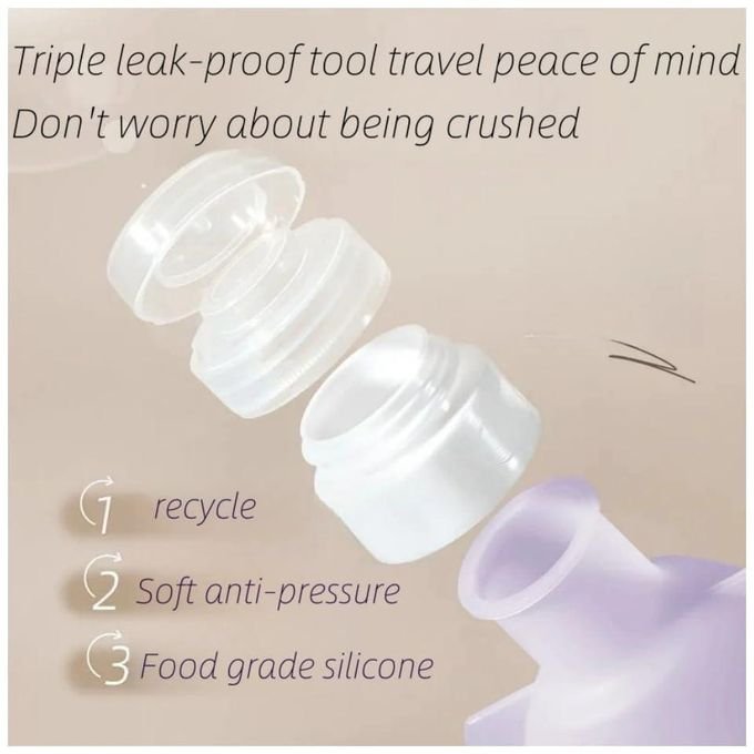 Fabriquées en silicone souple et résistant, ces bouteilles sont faciles à presser pour utiliser le produit jusqu’à la dernière goutte 💧. Leur conception intelligente garantit une fermeture étanche pour éviter toute fuite dans votre sac ou votre trousse de toilette.